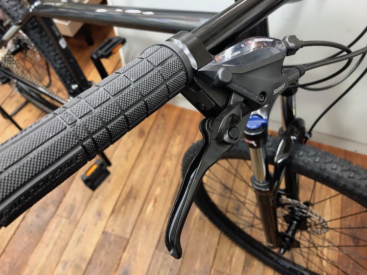 お買い得な価格ですがこの価格でシマノの油圧ディスクブレーキが搭載されています〜。