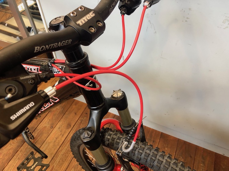 こちらのトレックのマウンテンバイクは、ワイヤー、グリップ、チェーンなど