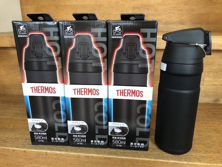 のんびりライドの途中で止まって飲む方には、こちらのボトルの方が保冷力も高くてオススメです。