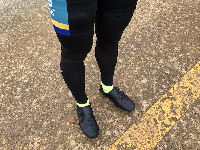 腕や足が寒くなってきますので、裏起毛の暖かいウォーマを使用しましょう。