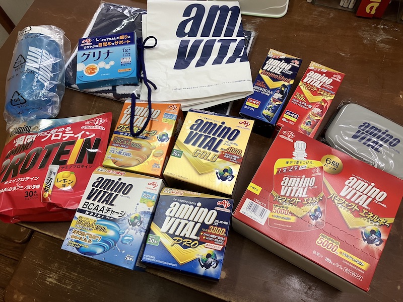 ご購入をいただきましたお客様に、店長選手権の景品としていただきましたアミノバイタルの