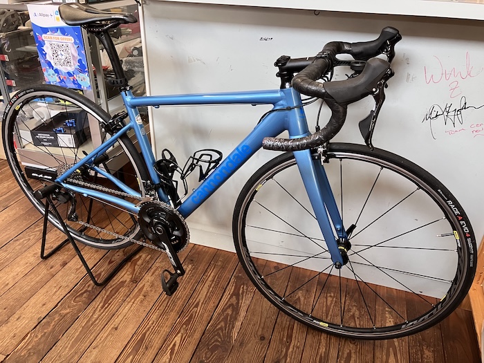 こちらのキャノンデールのロードバイクは、ハンドル・シートポストの軽量化カスタムに