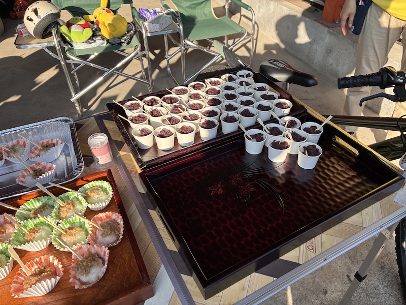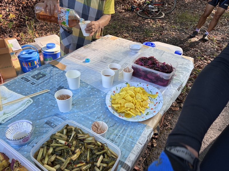 エイドステーションは、お手製の漬け物や、新米のおにぎり、きのこ汁、自家製甘酒・・・などなど