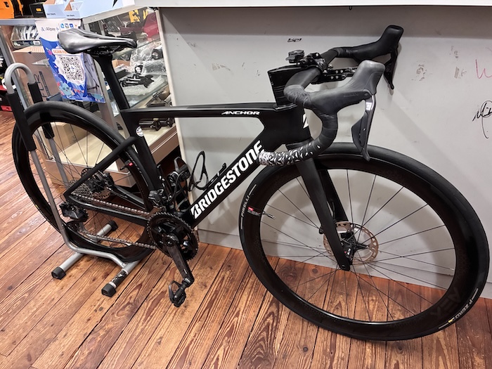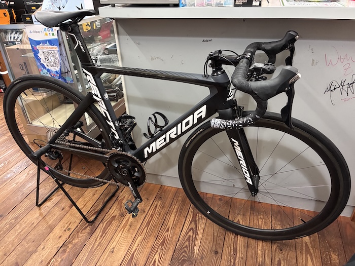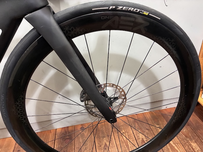 こちらのバイクは、エライリーの超軽量カーボンクランクと、ピレリの最新タイヤを取り付けさせていただきました。