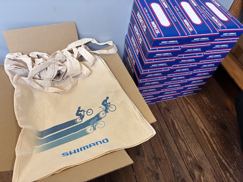 シマノのコットンバッグか、ワコーズのティッシュボックスのどちらかをプレゼントしております。