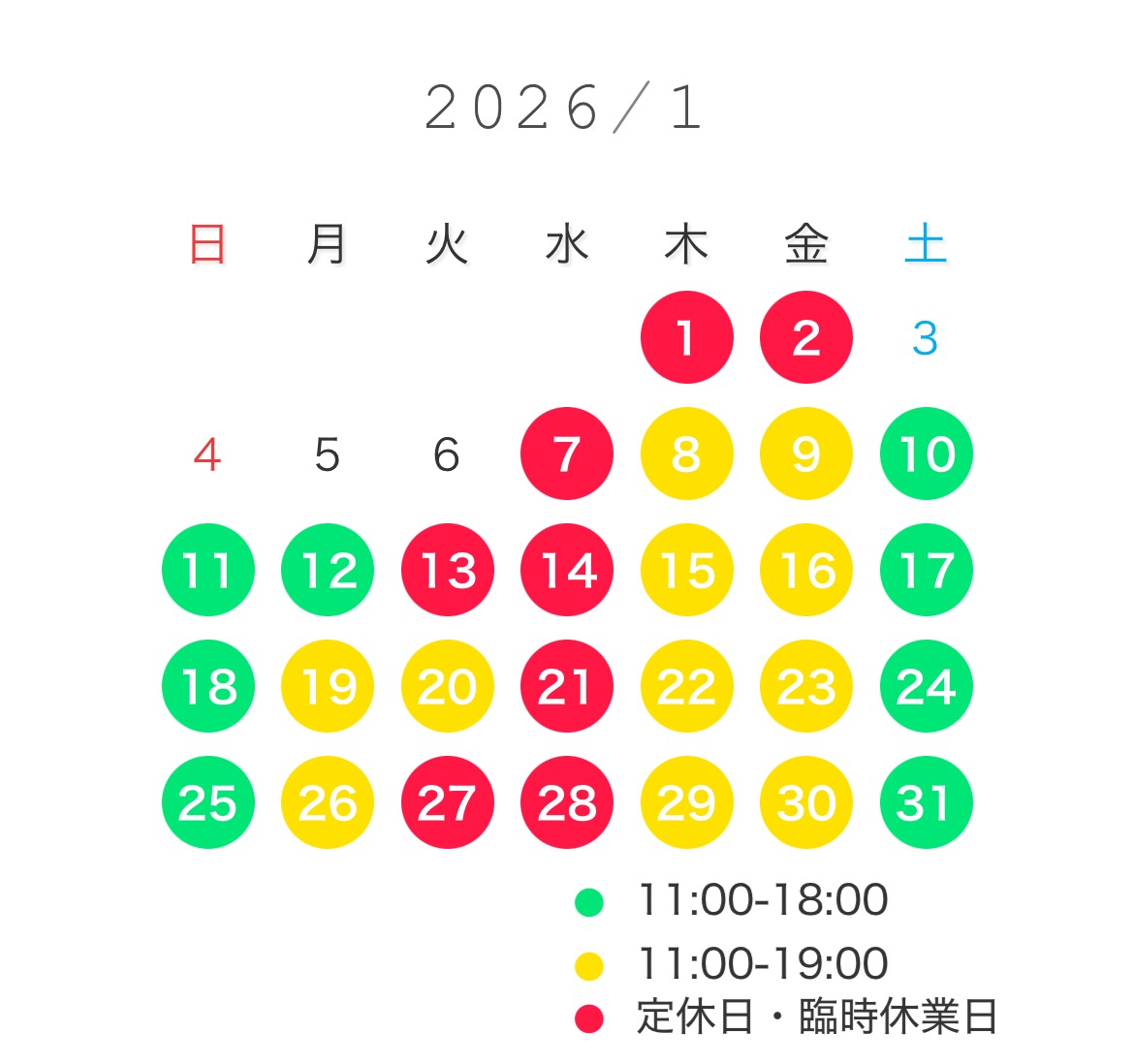 土日祝 11:00〜18:00